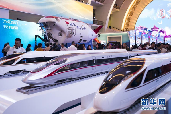 2017年9月28日,觀眾在北京展覽館參觀“砥礪奮進的五年”大型成就展。新華社發(張笑宇 攝)