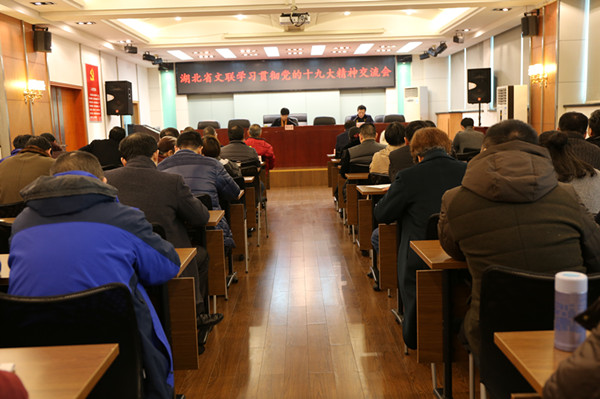 對于下一步省文聯如何繼續學習貫徹好黨的十九大精神和習近平新時代中國特色社會主義思想,鄧長青提出,一要提高政治站位,牢固樹立“四個意識”。學習貫徹黨的十九大精神是我們當前和今后一個時期的首要政治任務,要在學懂弄通做實上下功夫,既要組織黨員干部深入學習黨的十九大報告、黨章和《習近平談治國理政》(卷一、卷二),深刻領會十九大精神的精髓要義,同時要及時傳達學習中央重要會議和習總書記一系列的講話精神,深入理解和貫徹黨中央推進全面從嚴治黨的決策部署,牢固樹立“四個意識”,堅定“四個自信”,堅決維護習近平總書記在黨中央和全黨的核心地位,堅決維護黨中央權威和集中統一領導,自覺在思想上政治上行動上同以習近平同志為核心的黨中央保持高度一致。二要將學習貫徹十九大精神與實際工作結合起來。文聯要利用好文藝資源,利用文藝的形式貫徹十九大精神。文聯黨員干部和各文藝家協會要深入學習和思考十九大中關于“繁榮和發展社會主義文藝”的重要論述以及習總書記在北京文藝工作座談會、全國十次文代會上講話精神,大力推進文聯自身改革創新,盡力為廣大文藝家和文藝工作者服好務,團結和引導他們堅持以人民為中心的創作導向,堅持“深入生活、扎根人民”,多開展現實題材的文藝創作,繼續組織開展文藝志愿服務活動。三要落實好全面從嚴治黨要求,進一步轉變作風。文聯作為黨領導下的群團機關,要按照中央和省委的安排部署,緊扣中心工作落實好全面從嚴治黨責任。要進一步加強機關黨的建設,推動新時代機關黨建創新發展。以加強支部建設為重要抓手,夯實基層基礎,進一步提升基層組織力、凝聚力和戰斗力。要按照習總書記關于進一步糾正“四風”加強作風建設的重要批示精神,加強機關作風建設,鍛造一支真抓實干、擔當負責的黨員干部隊伍,為湖北文藝事業發展提供堅強的組織保障。