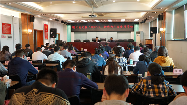 湖北省文聯“新時代 新作為”大學習活動圍繞學習踐行習近平新時代中國特色社會主義思想和黨的十九大精神,以繁榮發展湖北文藝為主線,以弘揚新時代主流價值為目的,以團結引領文藝工作者為目標,以文聯深化改革為抓手,突出政治引領,深化文藝精品創作,加強文藝人才培養,創新工作思維,繁榮文藝事業發展,落實從嚴治黨要求等主題,通過專家授課、黨員領導干部發言談體會打算、全體干部寫心得文章相結合的形式展開。活動第一階段從4月持續至5月上旬。