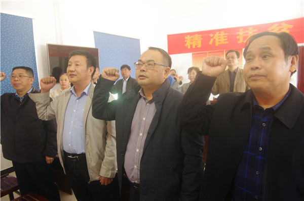 隨后,在駐點村黨員群眾服務中心二樓會議室,省文聯支部黨員與孝感市、大悟縣、宣化店鎮及陳河村部分黨員開展“主題黨日”活動,重溫入黨誓詞,交流學習心得,共商脫貧舉措。省文聯4名藝術家與7個貧困戶代表座談,聽取貧困戶近些年精準扶貧精準脫貧工作中的真實感受,為攻堅脫貧題材的藝術創作提供了寶貴素材。