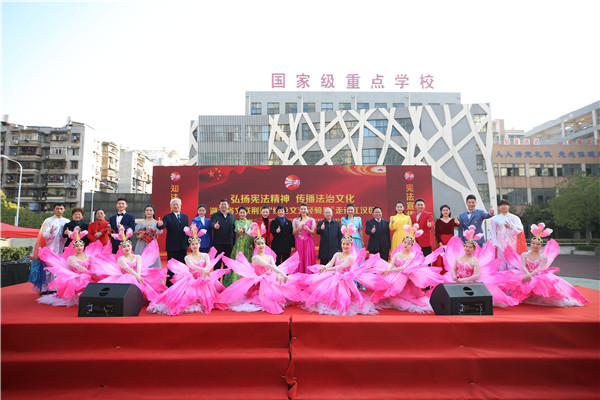 省文聯黨組書記、常務副主席鄧長青,省文聯黨組成員、副主席馬尚云,武漢市司法局黨委書記、局長、市委依法治市辦副主任關太兵,江漢區委副書記、區長李湛,省文聯機關、武漢市司法局、江漢區委、區人大、區政府、區政協、區委依法治區委員會各小組的有關領導和近千余名中小學生、社區群眾共同觀看演出,并參與憲法日宣傳服務咨詢活動。