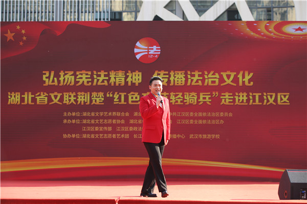 在全國法治宣傳日暨第六個國家憲法日之際,12月4日下午,湖北省文聯、湖北省演藝集團、中共江漢區委全面依法治區委員會在武漢市旅游學校共同舉辦了省文聯荊楚“紅色文藝輕騎兵”走進江漢區法治宣傳文藝演出活動,用文藝的形式弘揚憲法精神,傳播法治文化。