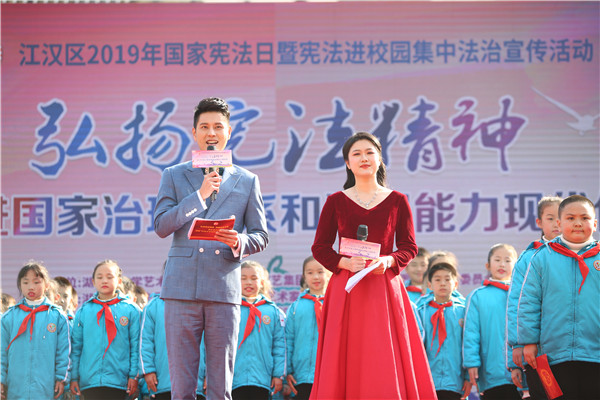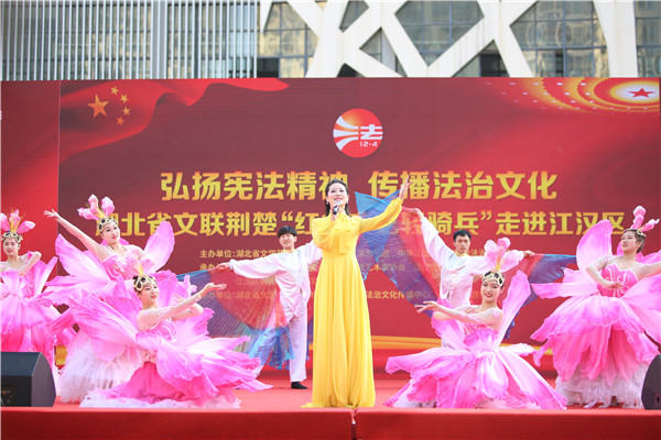 在全國法治宣傳日暨第六個(gè)國家憲法日之際,12月4日下午,湖北省文聯(lián)、湖北省演藝集團(tuán)、中共江漢區(qū)委全面依法治區(qū)委員會(huì)在武漢市旅游學(xué)校共同舉辦了省文聯(lián)荊楚“紅色文藝輕騎兵”走進(jìn)江漢區(qū)法治宣傳文藝演出活動(dòng),用文藝的形式弘揚(yáng)憲法精神,傳播法治文化。