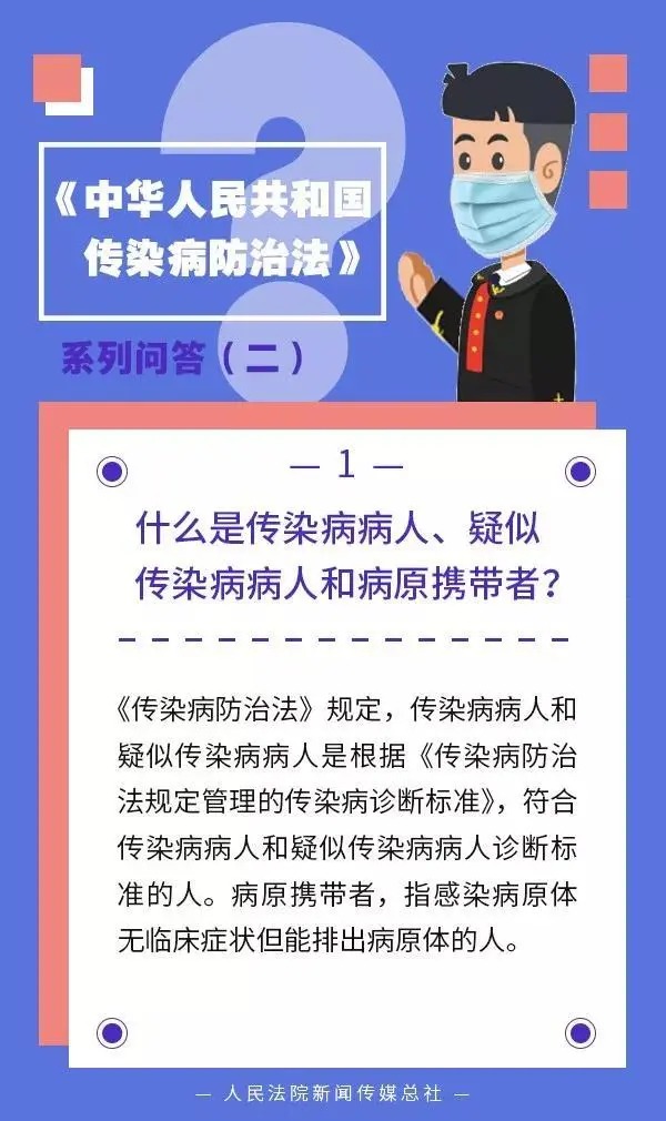 當(dāng)前,新型冠狀病毒感染肺炎疫情蔓延,正嚴(yán)重影響著社會(huì)正常生產(chǎn)生活秩序。傳染病防治關(guān)系到每一個(gè)人的生命健康。面對(duì)傳染病的肆虐,如何利用法律武器來抗擊疫情?您對(duì)傳染病防治法知多少?小編將為您作出系列介紹。今天推出第二個(gè)系列,敬請(qǐng)關(guān)注、擴(kuò)轉(zhuǎn)!