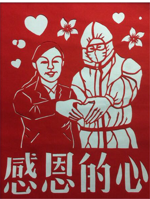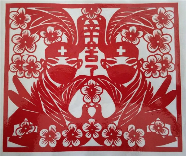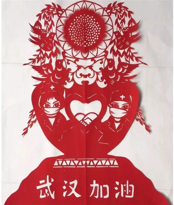 以藝抗“疫”,以紙傳情。湖北民間藝術工作者們創作了一批剪紙作品,謳歌英雄、鼓舞士氣、堅定信念,為防疫工作做好宣傳,激發和傳遞正能量。