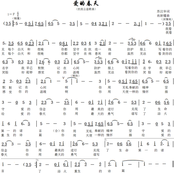 新冠肺炎疫情來勢洶洶,但無數白衣天使臨危不懼、逆行千里,在抗疫一線堅守崗位、挽救生命。黃石市文藝工作者傾情創作戰疫歌曲《愛的春天》,向抗疫白衣天使致敬,感謝他們“用天使一樣的情懷,描繪愛的春天;用最大的勇氣,譜寫了浴火重生的詩篇。”