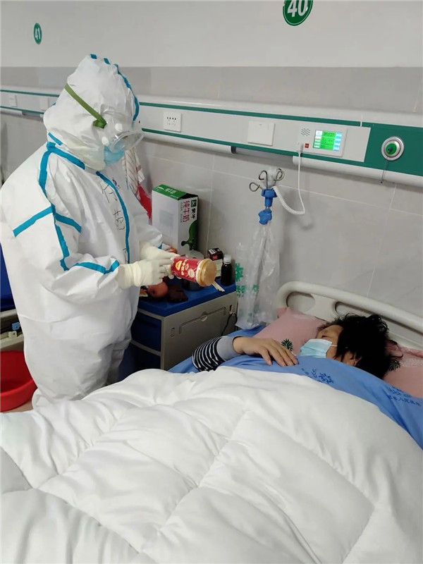 2月9日,她第一次進(jìn)入隔離病房。“心里多少有些忐忑、緊張,但我努力讓自己表現(xiàn)得淡定一些,不能讓患者看出來(lái)。”她補(bǔ)充道,“雖然經(jīng)過(guò)了培訓(xùn),但真正開(kāi)始面對(duì)新冠肺炎確診病人,說(shuō)一點(diǎn)都不害怕,那是假話。不過(guò),這種恐懼一閃而過(guò),容不得我們退縮。”