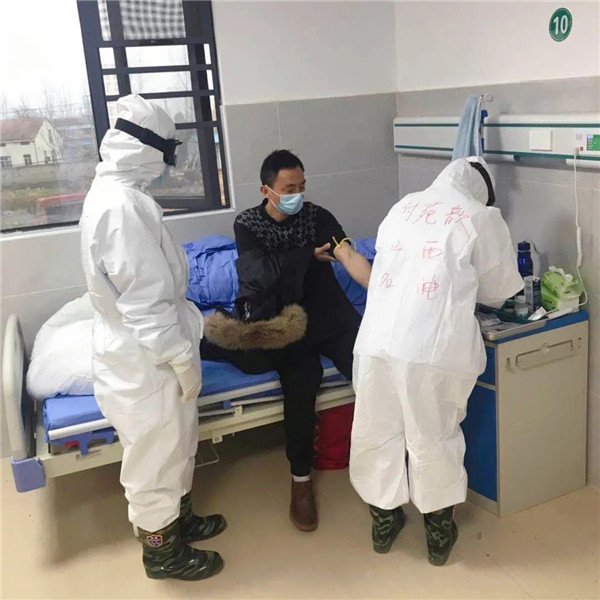 就在前幾天,病房里一位86歲的老大爺,因?yàn)榉尾窟€有炎癥沒(méi)有吸收,情緒焦慮,家人又不能在身邊陪伴,出現(xiàn)不配合治療想輕生的舉動(dòng)。郭哲耐心地陪著老人說(shuō)了近2個(gè)小時(shí)的話,疏導(dǎo)老人的心理,承諾幫他聯(lián)系家屬,樹(shù)立信心,安心治病,老人才放下心理負(fù)擔(dān),情緒終于穩(wěn)定。“現(xiàn)在情況越來(lái)越好,患者的總量越來(lái)越少,總體形勢(shì)在變好。” 對(duì)戰(zhàn)勝疫情,郭哲信心滿滿的說(shuō)。