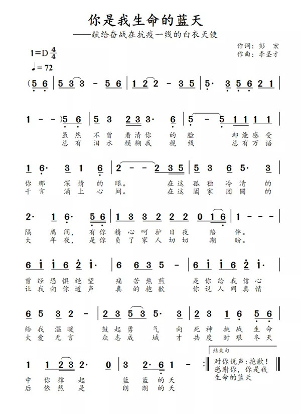 在抗疫的第一線,數以萬計從全國各地逆行來到疫區的白衣天使們,把個人生死置之度外,用自己的生命和心血為患者撐起了一片藍天。歌曲《你是我生命的藍天》,獻給每一位可敬可愛的醫護人員!