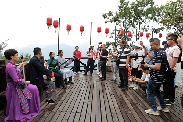 宜昌市五峰土家族自治縣是全國四個土家族自治縣之一,少數民族文化底蘊深厚。本次研修班安排了實地學習交流南曲、土家打溜子、撒葉兒嗬等國家非物質文化遺產,觀摩學習湖北省土家族(五峰)歌舞劇團編排的民族歌舞劇《古道茶人》,讓專家、學員們領略土家族傳統文化魅力,把握傳承與發展、守正與創新的辯證關系,為自身的音樂創作積累民族素材。
