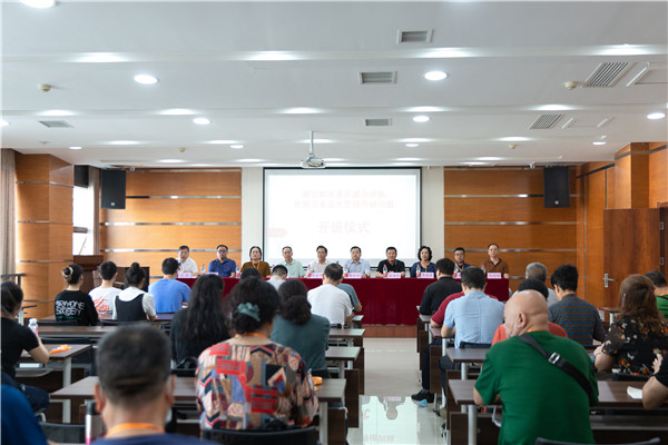 6月20日上午9點,培訓活動在黃石市群藝館三樓報告廳舉行開班儀式,開班儀式由湖北省音協駐會負責人、秘書長劉翔主持。湖北省文聯黨組成員、副主席王永平,湖北省文聯組聯部主任張海旺,黃石市委宣傳部副部長、黃石市文聯黨組書記梅定祥,黃石市文聯副主席劉遠芳,黃石市文聯二級調研員呂永超,黃石市文聯副主席、黃石音協主席阮瓊剛出席開班典禮。