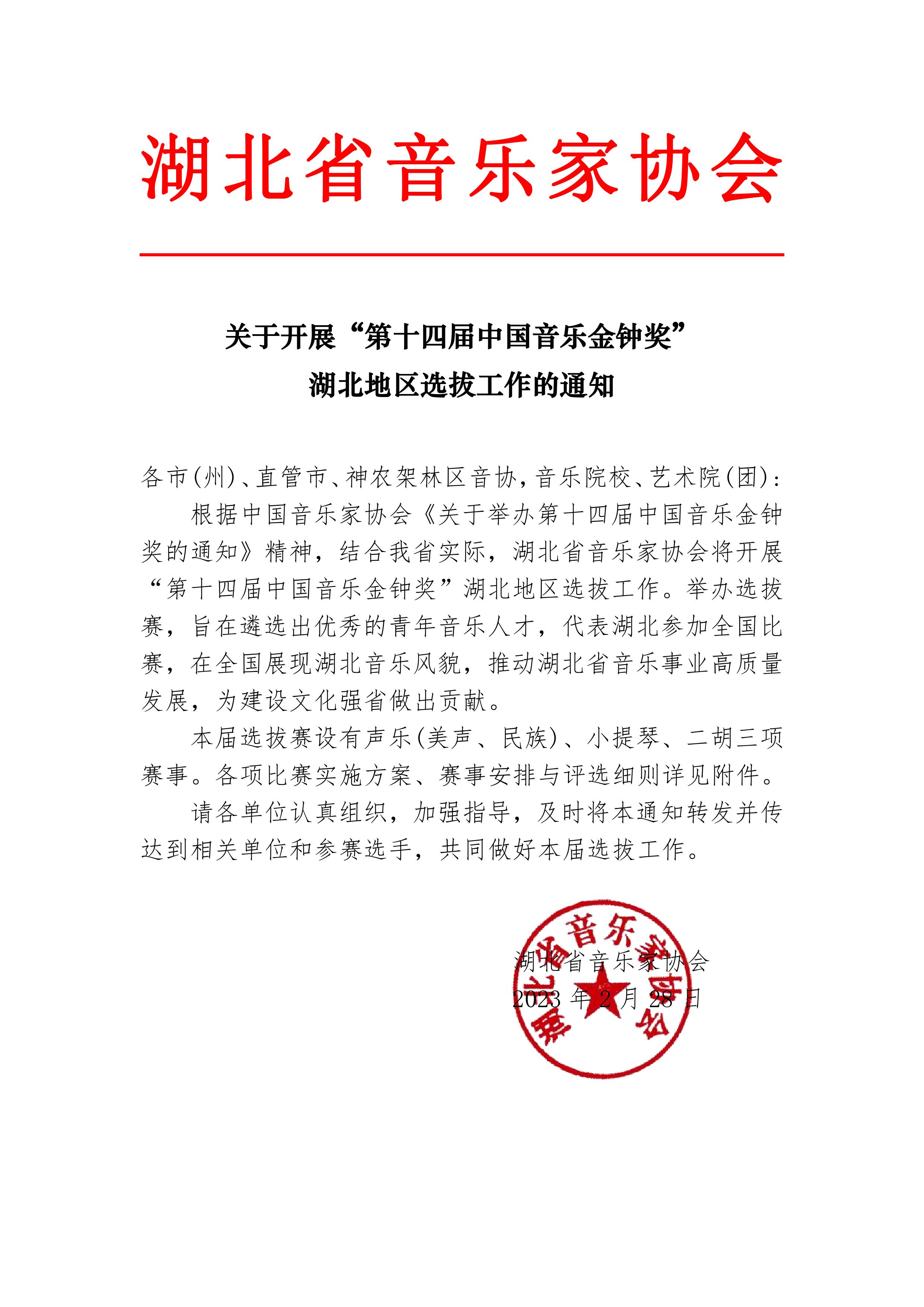 附件1:第十四屆中國音樂金鐘獎聲樂比賽湖北地區選拔賽賽事安排及評選細則.doc