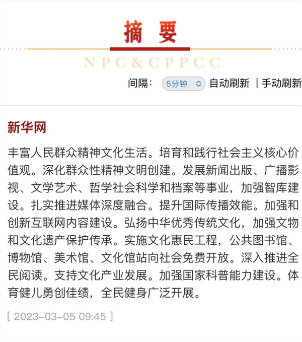 培育和踐行社會(huì)主義核心價(jià)值觀。深化群眾性精神文明創(chuàng)建。發(fā)展新聞出版、廣播影視、文學(xué)藝術(shù)、哲學(xué)社會(huì)科學(xué)和檔案等事業(yè),加強(qiáng)智庫建設(shè)。扎實(shí)推進(jìn)媒體深度融合。提升國際傳播效能。加強(qiáng)和創(chuàng)新互聯(lián)網(wǎng)內(nèi)容建設(shè)。弘揚(yáng)中華優(yōu)秀傳統(tǒng)文化,加強(qiáng)文物和文化遺產(chǎn)保護(hù)傳承。實(shí)施文化惠民工程,公共圖書館、博物館、美術(shù)館、文化館站向社會(huì)免費(fèi)開放。深入推進(jìn)全民閱讀。支持文化產(chǎn)業(yè)發(fā)展。加強(qiáng)國家科普能力建設(shè)。體育健兒勇創(chuàng)佳績,全民健身廣泛開展。