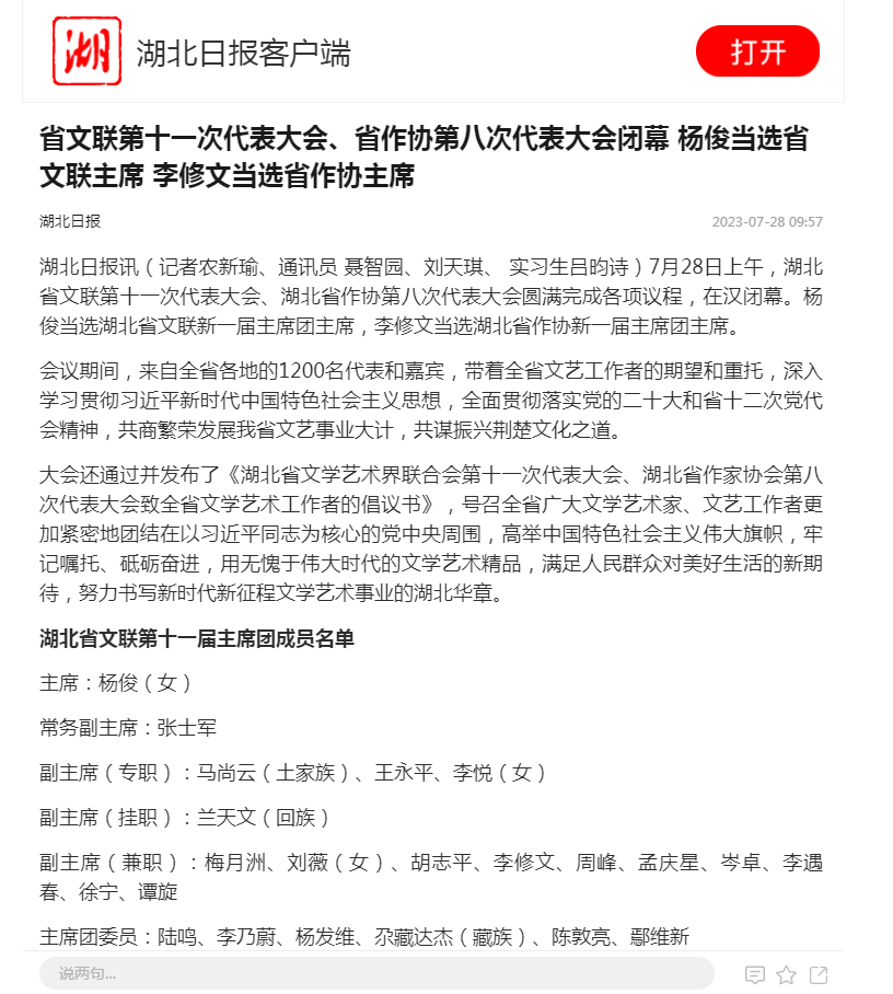 主辦單位:湖北省文學(xué)藝術(shù)界聯(lián)合會 技術(shù)支持:荊楚網(wǎng)