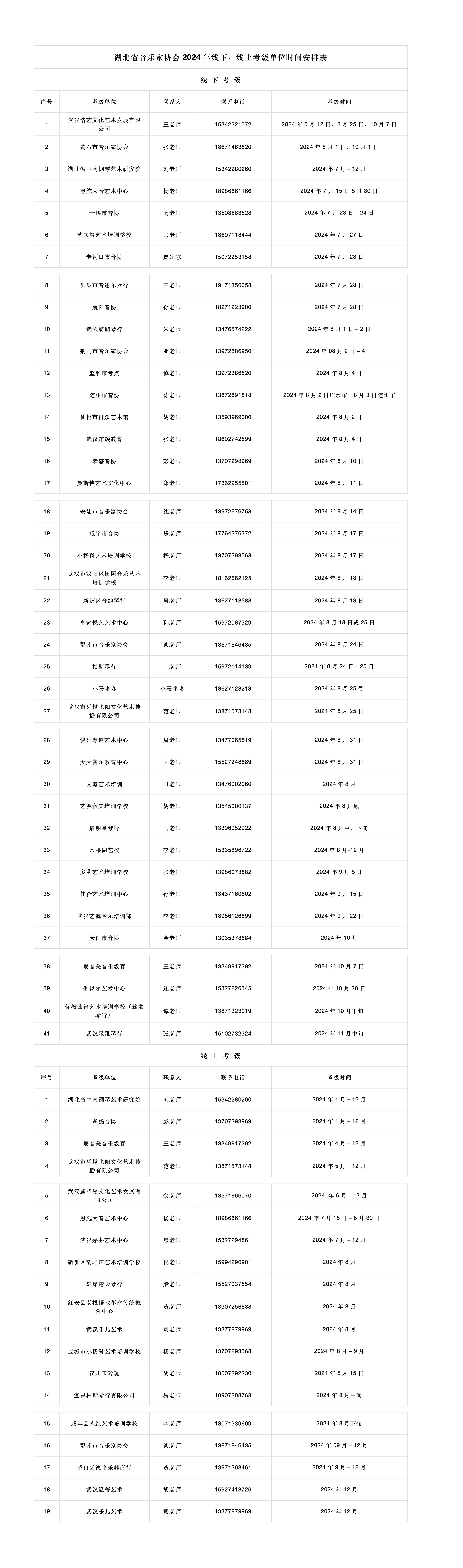 線下考級時間:2024年05月至12月(考級具體時間、地點詳見附件,5月上傳線下考級時間表)