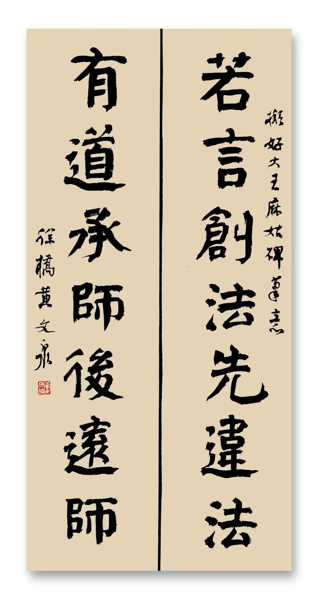 在眾多經(jīng)典作品中,顏真卿的《顏勤禮碑》對(duì)黃文泉的影響尤為深遠(yuǎn)。顏真卿的書法以雄渾大氣、端莊肅穆著稱,具有極高的藝術(shù)價(jià)值和歷史地位。黃文泉對(duì)《顏勤禮碑》進(jìn)行了深入研究和反復(fù)臨摹,從中領(lǐng)悟到了顏體書法剛勁有力的骨氣與雄渾厚重的力量感。在他的筆下,顏體的雄渾與厚重得以完美呈現(xiàn),但他并未被顏體的固有風(fēng)格所束縛,而是在傳承其精髓的基礎(chǔ)上,進(jìn)行了創(chuàng)新。