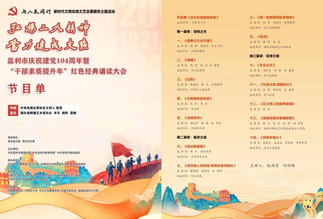 為深入學(xué)習(xí)貫徹習(xí)近平新時代中國特色社會主義思想和黨的二十大精神,落實(shí)全省“干部素質(zhì)提升年”工作部署,6月24日晚,我市成功舉辦“弘揚(yáng)三大精神 奮力建成支點(diǎn)”慶祝建黨104周年暨“干部素質(zhì)提升年”紅色經(jīng)典誦讀大會。