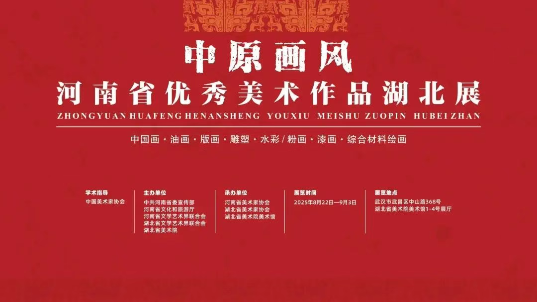 2025年8月23日上午10點,由中國美術(shù)家協(xié)會指導(dǎo),中共河南省委宣傳部、河南省文化和旅游廳、河南省文學(xué)藝術(shù)界聯(lián)合會、湖北省文學(xué)藝術(shù)界聯(lián)合會、湖北省美術(shù)院主辦,河南省美術(shù)家協(xié)會、湖北省美術(shù)家協(xié)會、湖北省美術(shù)院美術(shù)館承辦的“中原畫風(fēng)”河南省優(yōu)秀美術(shù)作品湖北展在湖北省美術(shù)院美術(shù)館隆重開幕。